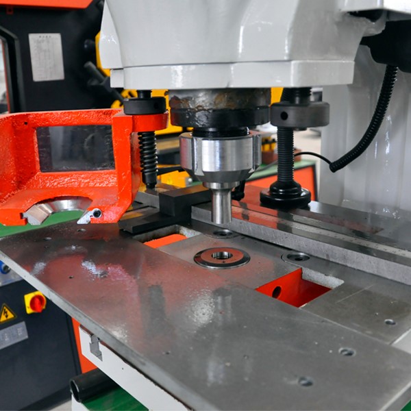 5 integrated workstations each execute a different function: punching, notching, flat bar shearing, angle shearing, and bar shearing.